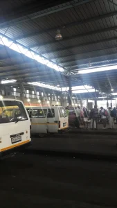 The terminal features a well-organized layout with designated waiting areas and clearly marked boarding zones for different routes. The rank surface is mostly paved, though some areas may show wear typical of high-traffic transport facilities. There are several covered waiting areas that provide shelter from weather conditions, particularly important during Alexandra’s winter months.
